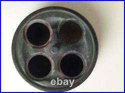 Élégant vide-poche ou cendrier en laiton, signé Frécourt, orné de décorations en relief représentant des feuilles et des boutons de roses. Réalisé en France dans les années 1920, il illustre parfaitement la transition entre l’Art Nouveau et l’Art Déco. Maurice Frécourt était un sculpteur et médailleur français actif au début du XXe siècle. Il travailla le bronze, le laiton et divers métaux, souvent inspiré par la nature et les motifs floraux. Ses pièces, très recherchées par les collectionneurs, témoignent de l’élégance décorative française de l’époque. C’est parfait pour. Les collectionneurs d’objets d’art et de design du début du XXe siècle. Les passionnés d’Art Nouveau et d’Art Déco. Une touche raffinée sur un bureau, un salon ou une entrée. Une idée cadeau élégante et intemporelle. Largeur : 10,5 cm. Hauteur : 1,5 cm. Il présente des signes d’usure dus à l’âge et à l’utilisation. Il s’agit de traces que nous avons souhaité conserver au maximum lors de la phase de nettoyage de l’objet et qui, dans tous les cas, pourront être éliminées par des opérations de polissage plus approfondies. ATTENTION : Il s’agit d’un objet «vintage» avec son propre passé et sa propre histoire. Ayant déjà été utilisé, il peut présenter des traces d’utilisation et du passage du temps. Ce que l’on appelle généralement « patine » et qui caractérise les objets vintage. Les images et la description servent à mieux clarifier l’état de conservation.